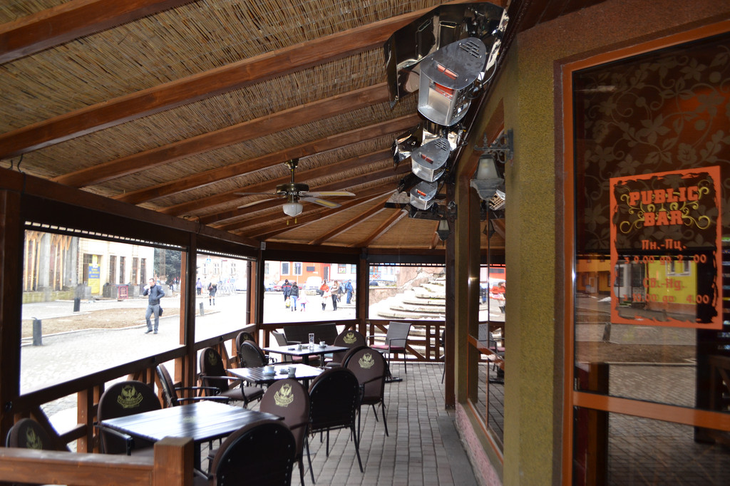 Отопление уличной террасы кафе PublicBar г.Хуст